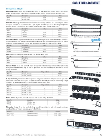 Brush Strip Panels: 16-ga. steel panel with tray and brush strip allows cable bundles to be routed between CBP-2