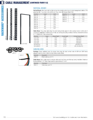 Vertical Panels: Steel panel with multiple lacing slots provides vertical-mount cable management solution. 2"W