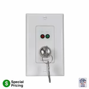 Key Switch with White Decorator Wall Plate, Momentary Closure, 2-LEDs | RPSW2-MKP - CLOSEOUT