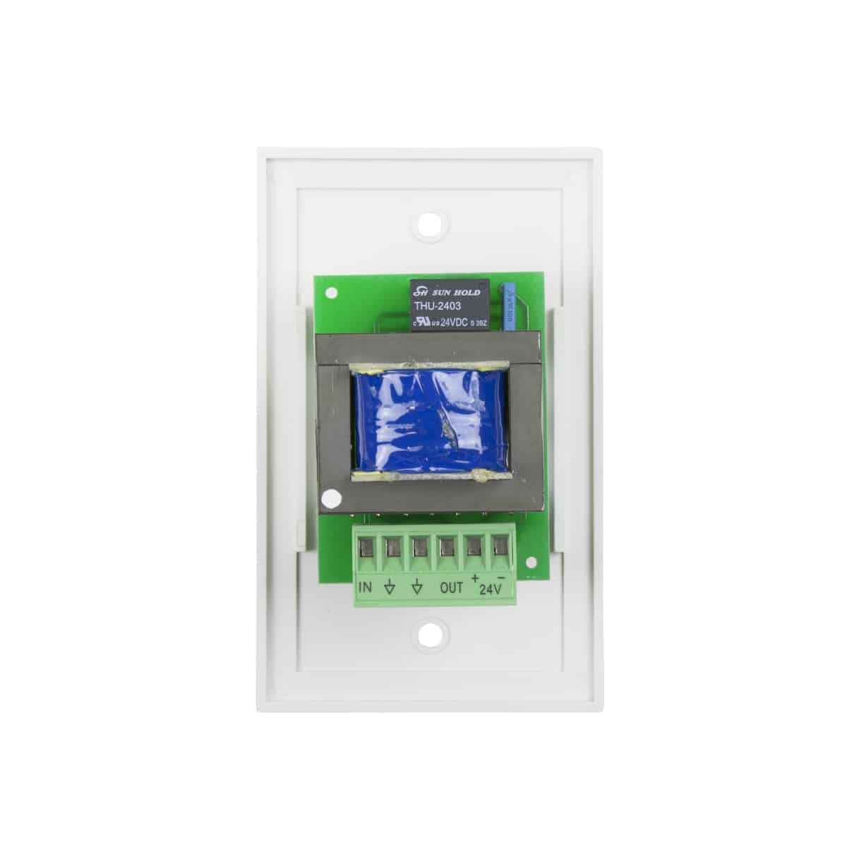 Mono autoformer attenuator volume control with rotary switch is for use with 25V/70V speaker line. This volume control features Phoenix style plug-in screw termination strips, 100W power rating, 3dB per step attenuation and a priority relay for emergency bypass. Includes one-gang white wall plate.