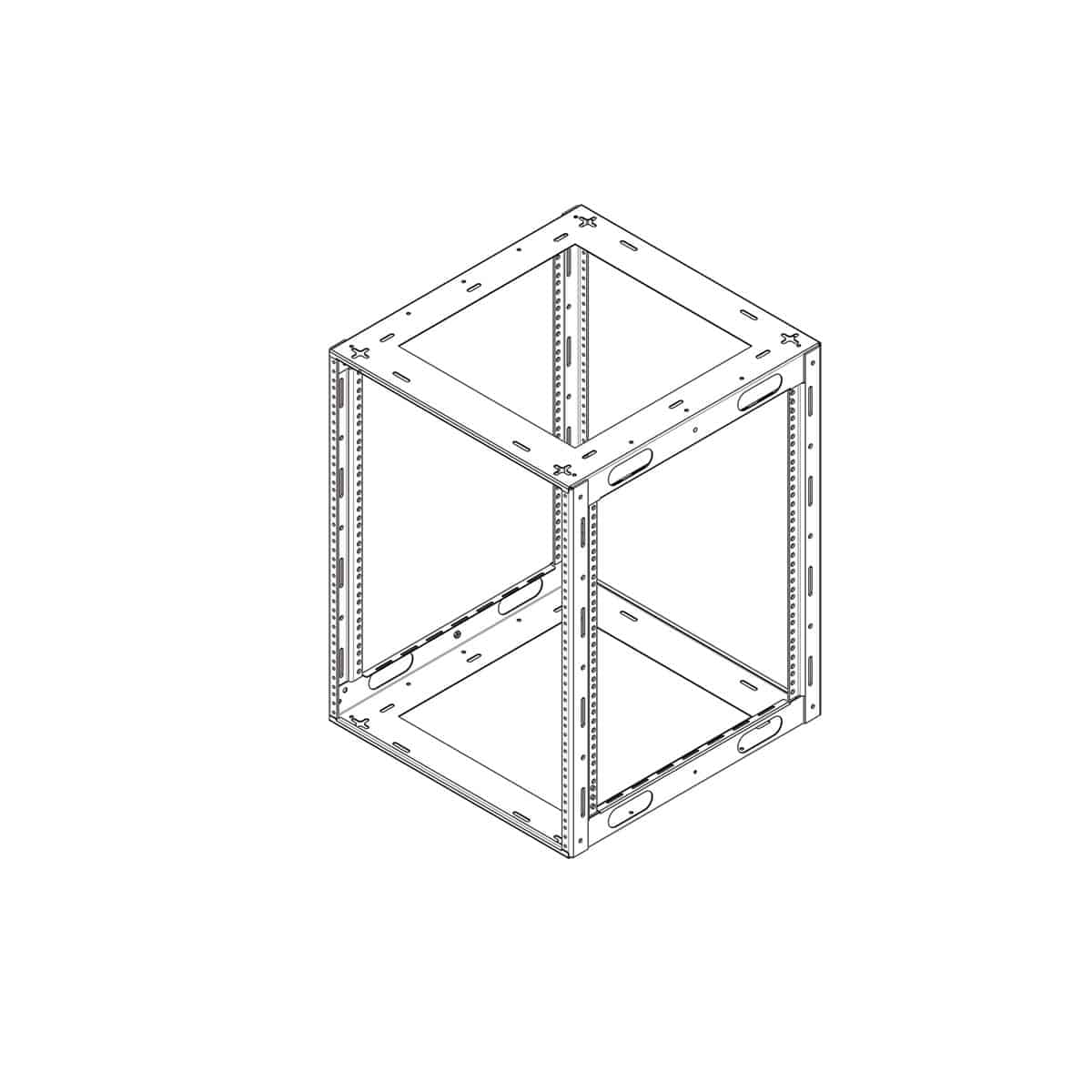 Engineered for electronics placed inside cabinetry or beneath a counter or desk, the LCR AV rack is fully-welded to provide rugged support, torsional rigidity and labor-saving installation (ships ready to install). The rack has a 16-gauge USA-certified steel frame and 11-gauge corner post rails. Rack corners feature 0.25 inch diameter holes and slots for anchoring or positioning. Includes grounding studs and provisions to accept anchor bolts (not included). Smooth-black powder-coat finish. Made in USA.