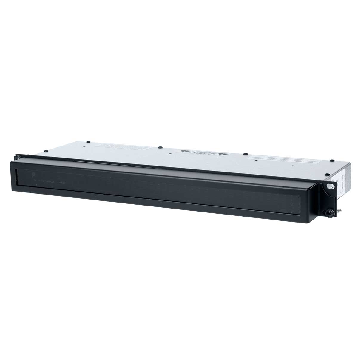 The rackmount security cover shall be Lowell Model SSC-1P, which shall have a 16-gauge certified U.S. steel frame with black finish and a smoked plexiglass inset panel. The cover shall measure 19 in. x 1U and protrude 1.5 in. to accommodate equipment knobs and controls. It shall feature a flange (0.938 in.) and mount in front of equipment using two screws.