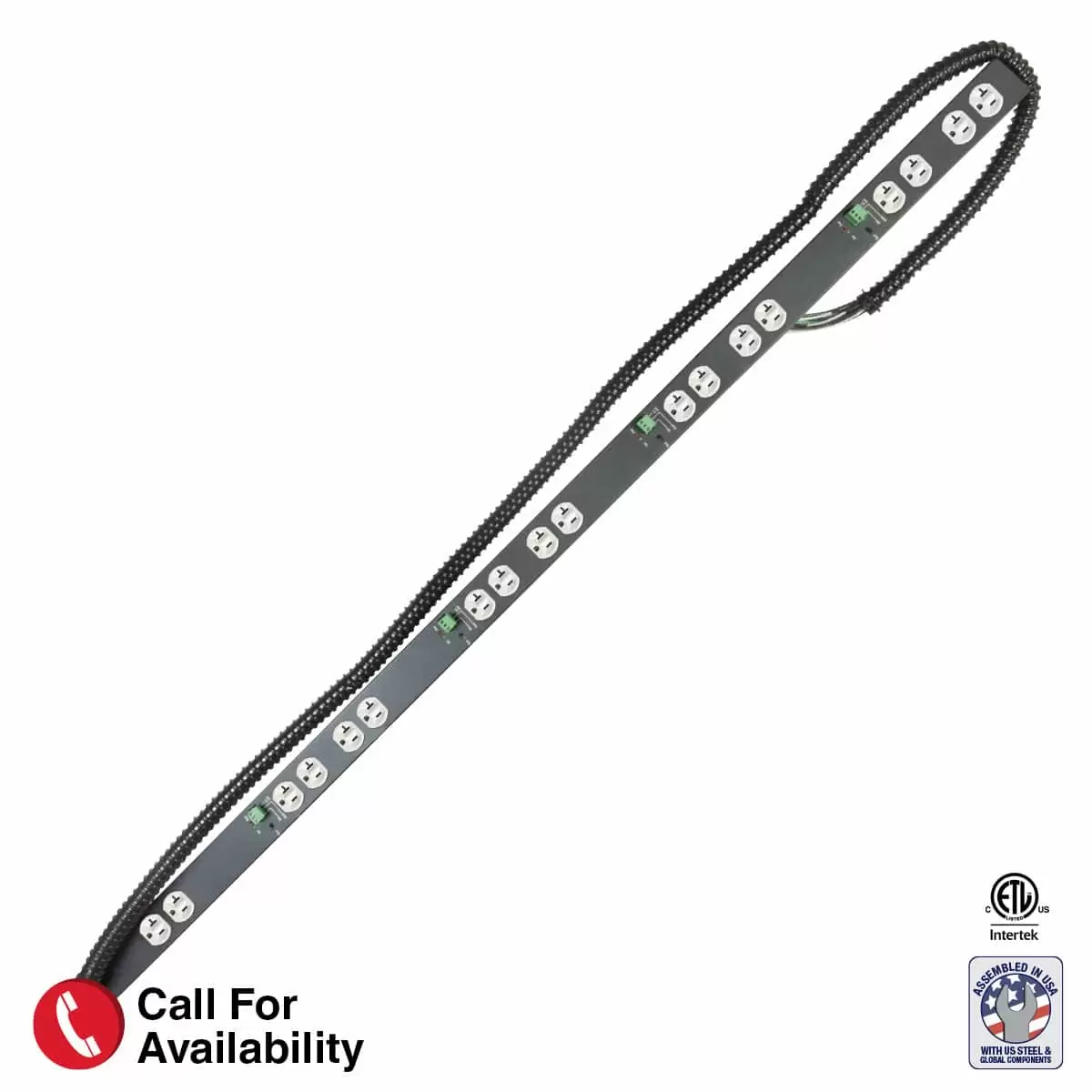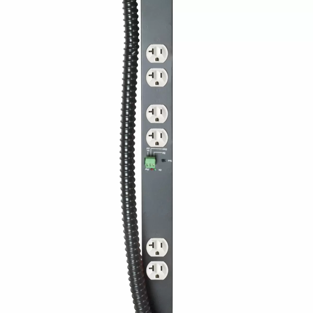 Multi-circuit power strip with low voltage remote power control of connected equipment shall be Lowell Model ACS-2018-5C-RPC-HW. Power rating shall be 20A. Strip shall include one circuit (un-switched 20A duplex receptacle) plus four circuits of two 20A duplex receptacles (NEMA 5-20R). Each switched circuit shall include a remote power control terminal for low voltage connection to remote switches or sequential control devices. The chassis shall measure 60 in. x 2 in. x 2 in. and terminate with rotating connector to flexible, non-metal conduit that is 6-foot long with pigtail leads. It shall install to cabinets with adjustable or fixed mounting rails and to surfaces using universal brackets and hardware provided. The power strip shall be Made in USA using USA-certified steel. It shall be ETL Listed, Trade Agreement Act (TAA) compliant, and Buy American Act (BAA) compliant.