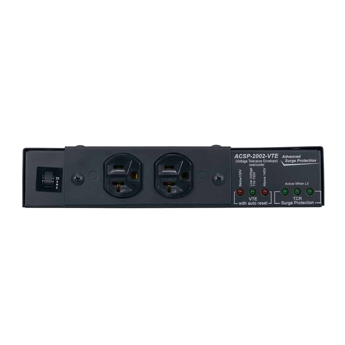 The 15A single-circuit surge protector shall be Lowell model ACSP-1502-RPC with two single outlets. It shall protect the line to neutral without ground wire contamination. It shall be capable of protecting electronic equipment from transient voltages, spikes and surges up to 72,000A and have a response time of less than 5 nanoseconds. It shall include mounting brackets and two 15A outlets mounted on a plate that can be rotated 90º for front or side access. It shall include LED status indicators. It shall include remote power control capability (by low-voltage sequencer, switch or control system that provides a maintained dry contact closure, not included). It shall be ETL Listed and conform to UL1449-4 and ANSI C62.41