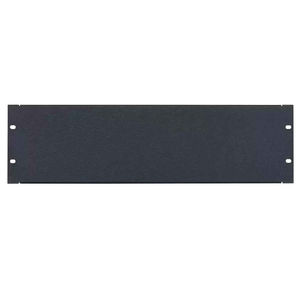 Blank aluminum 19-inch panels with black wrinkle textured powder epoxy finish have a flange for added strength. Panels are available from 1 to 6 rack units and can be ordered individually or in multi-pack cartons. Product is securely wrapped — ideal for shipping and merchandising.