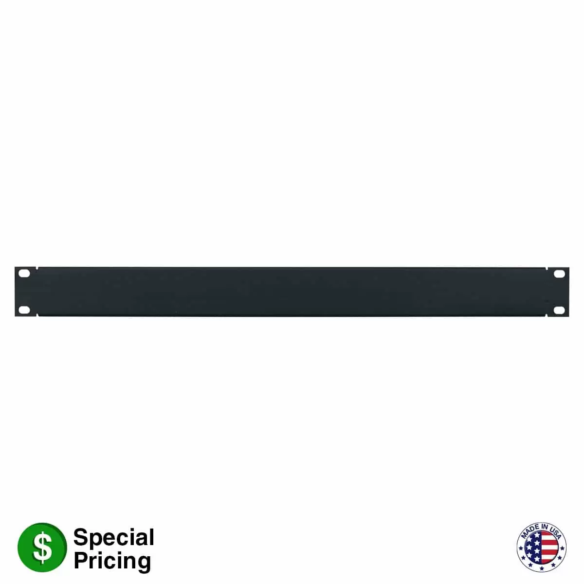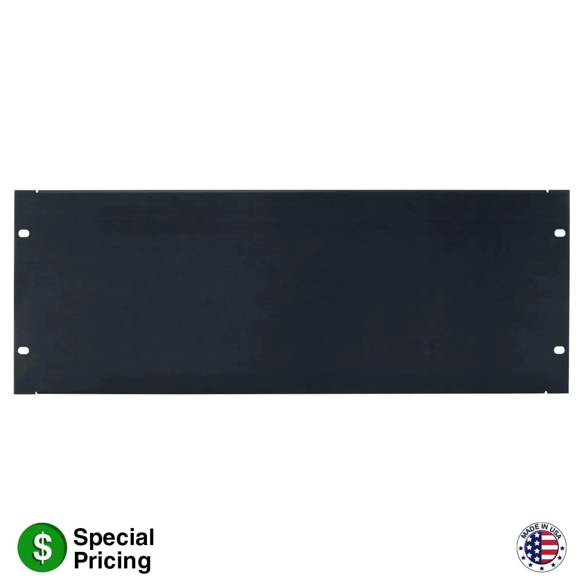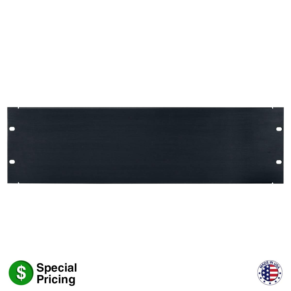 Blank aluminum panels for 19-inch racks have a flange for added strength and feature a brushed black anodized finish. Panels are available from 1 to 4 rack units. Sold individually.