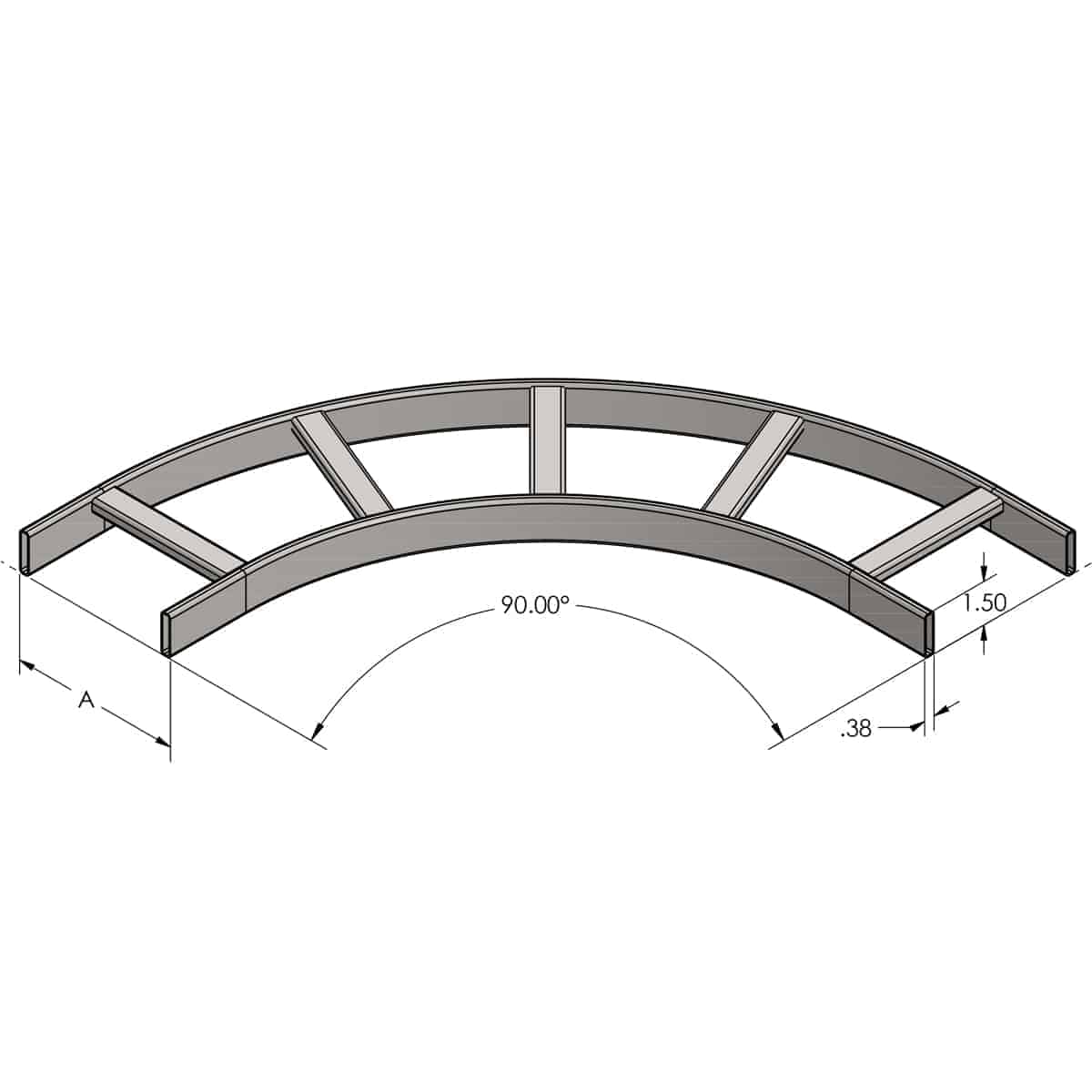 The cable ladder shall include a radius horizontal bend to create a 90 degree sweep in the horizontal plane, Lowell Model CL-12HT. It shall be made in the U.S.A.