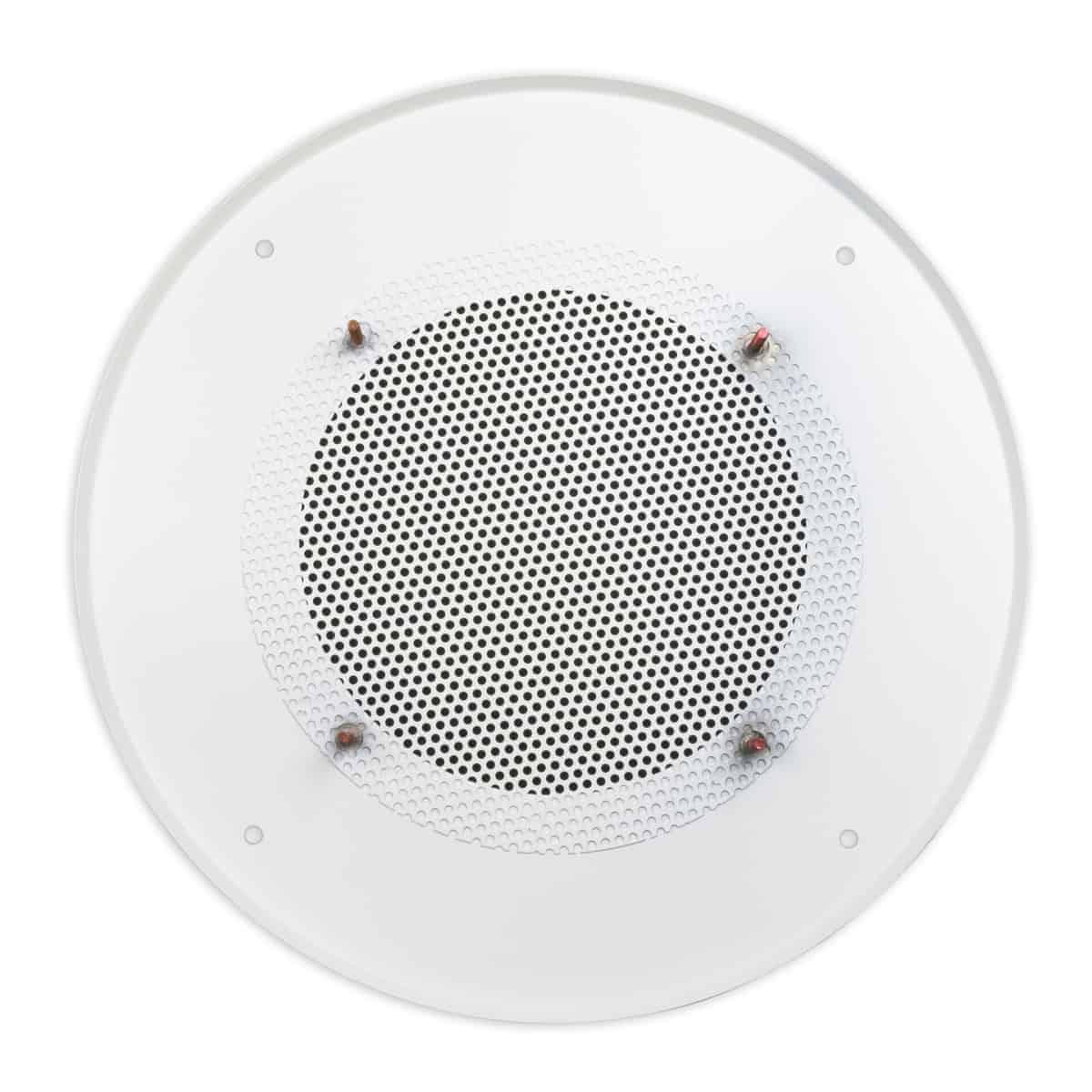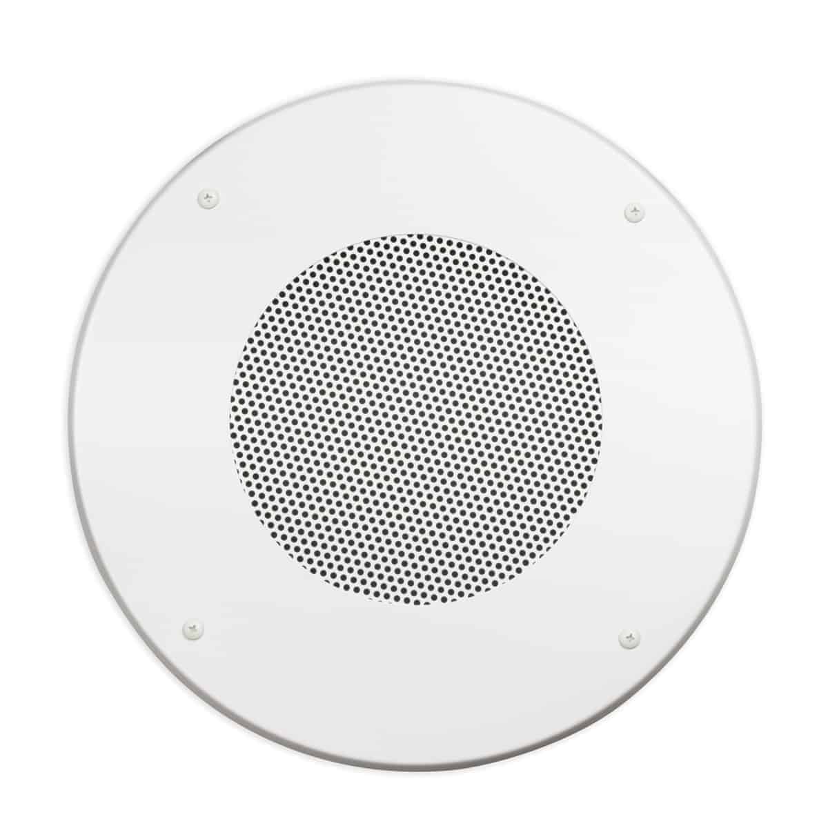 Two-piece welded steel fine-mesh grille, model CS-8H, has a contoured edge and white powder epoxy finish. It's made for use with an 8-inch speaker driver.
