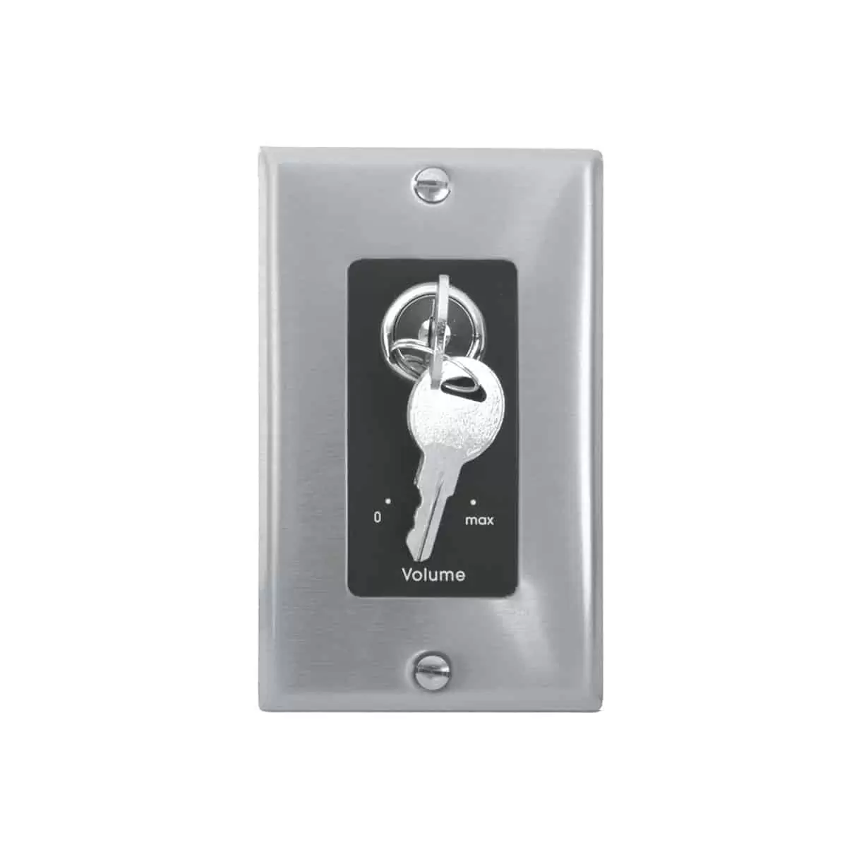 100W Mono Volume Control with Bypass, Key Switch, 1-Gang Decorator Wall Plate, SS/Black