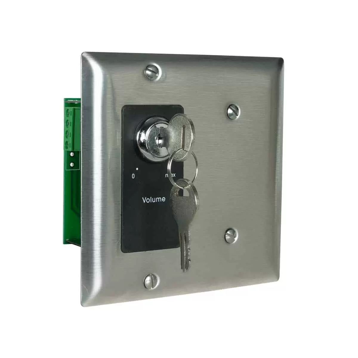 200W Mono Volume Control with Key Switch & 2-Gang Decorator Wall Plate, SS/Black