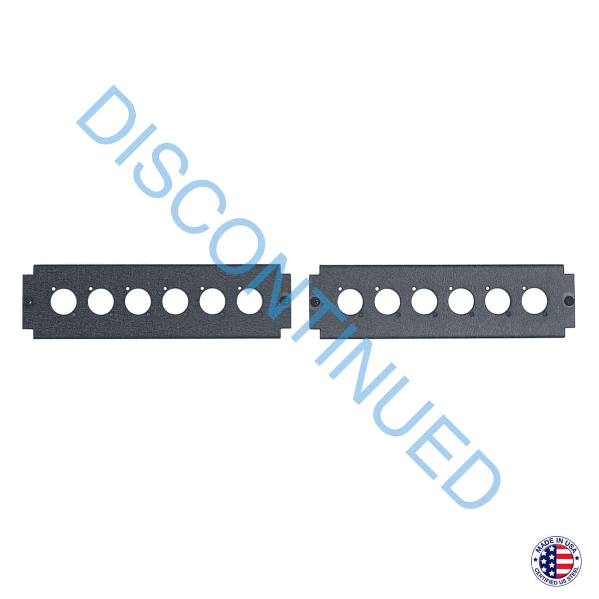 Set of two steel panels fit the large knockouts in the rear of Lowell rack series LER, LGR, LPR, LPPR and LWR. These 9.69 inch wide panels are punched to mount Neutrik® style connectors (up to six per panel).