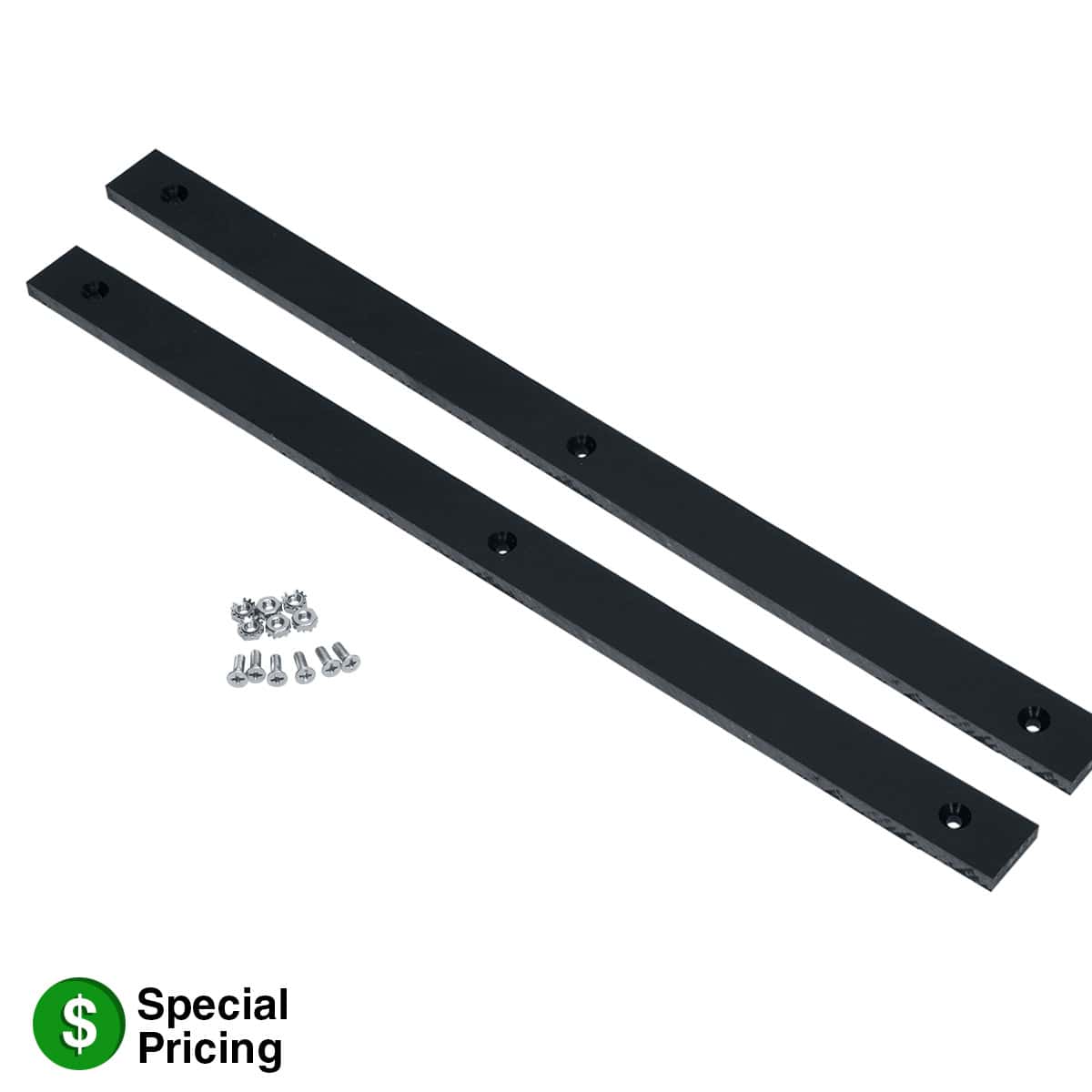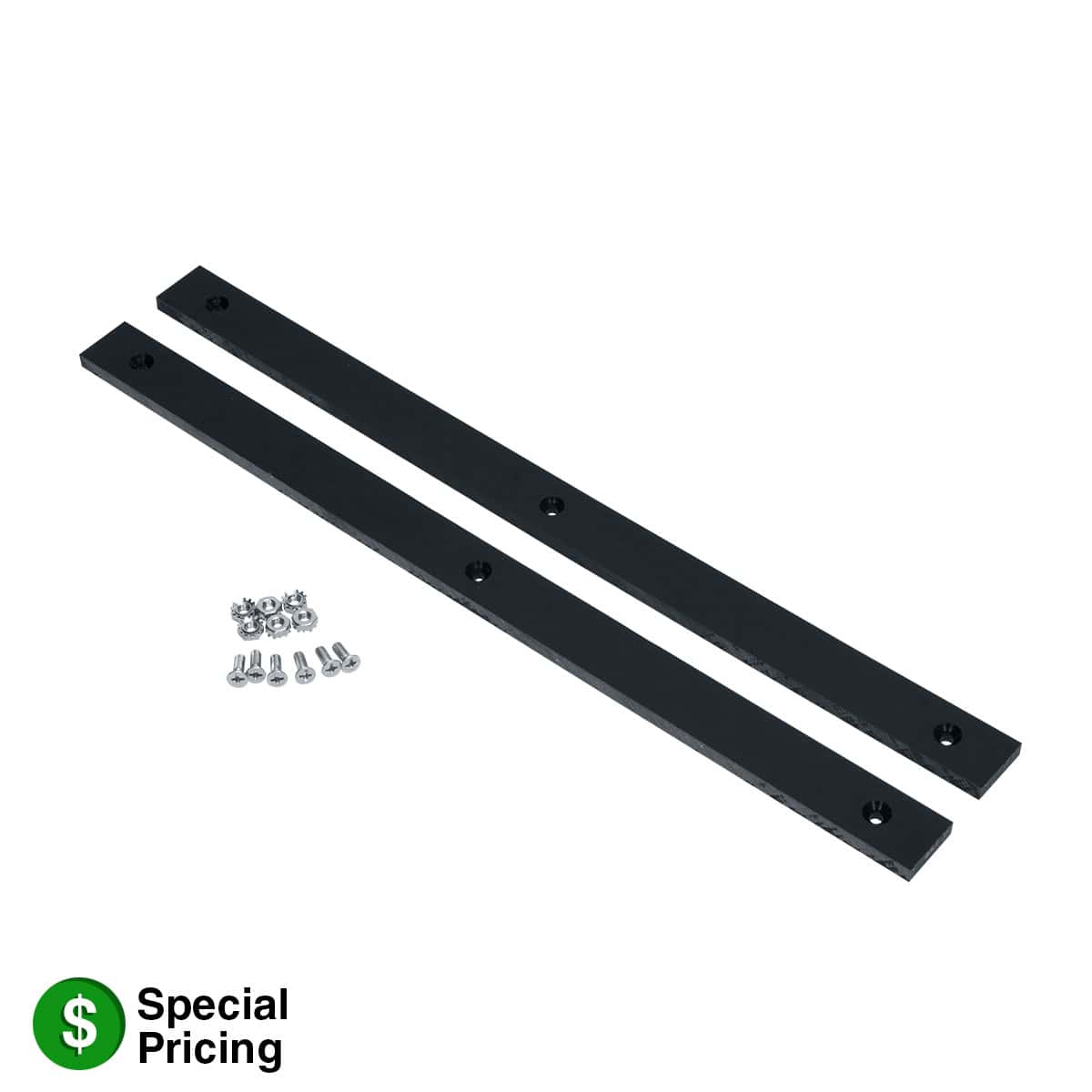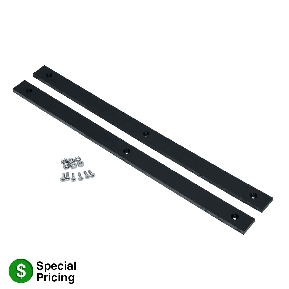 For use with LCR Series racks, the kit features two plastic runners that attach to the bottom of the rack in order to protect millwork when the rack is used in a slide-in application in a cabinet or credenza.