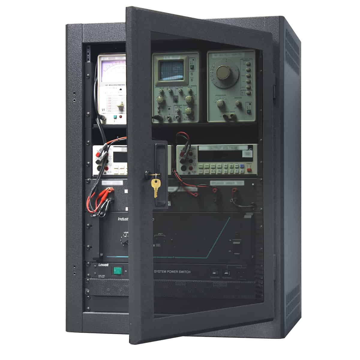 Smoked plexiglass front door surface-mounts to Lowell 22-inch and 23-inch wide racks (LDTR, LER, LGR, LGNR, LPR, LSER, LSGR, LWBR, LWR, LWSR Series). The door is reversible and mounts with left- or right-hand swing using nutserts provided with the specified rack. Features integral handle and key lock (keyed differently than rack's recessed rear door).