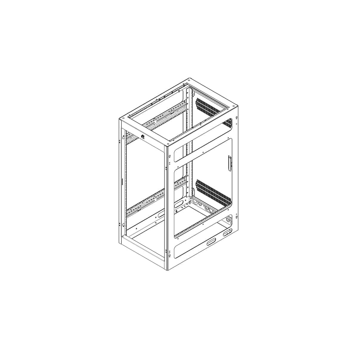 - Cable Management: multiple lacing points, holes, knockout panels