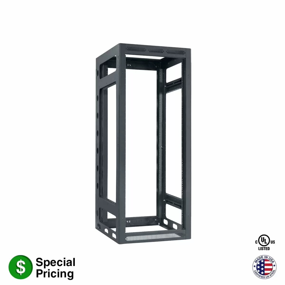 - Open frame with multiple 2 in. holes on sides for cable runs between racks
