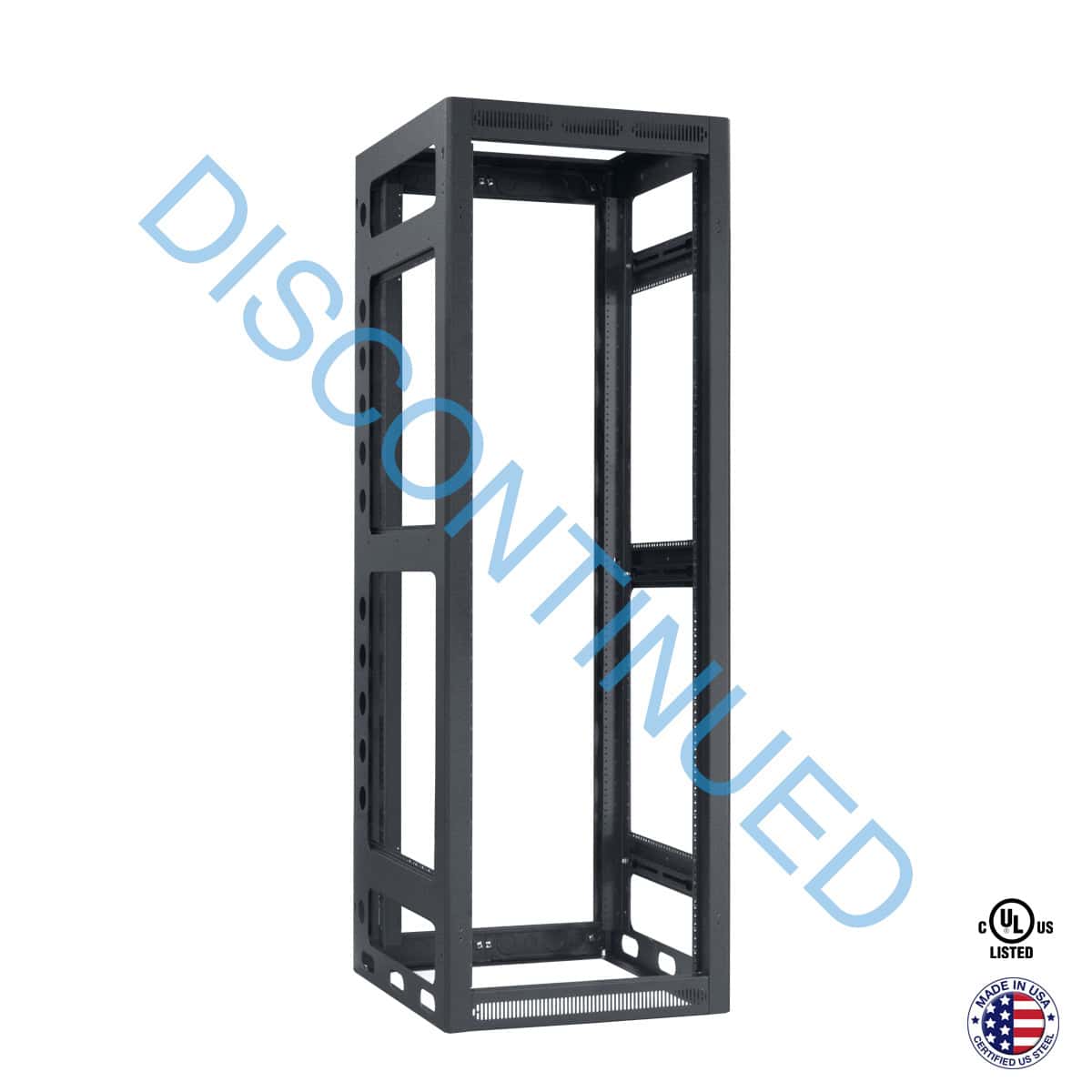 - Open frame with multiple 2 in. holes on sides for cable runs between racks