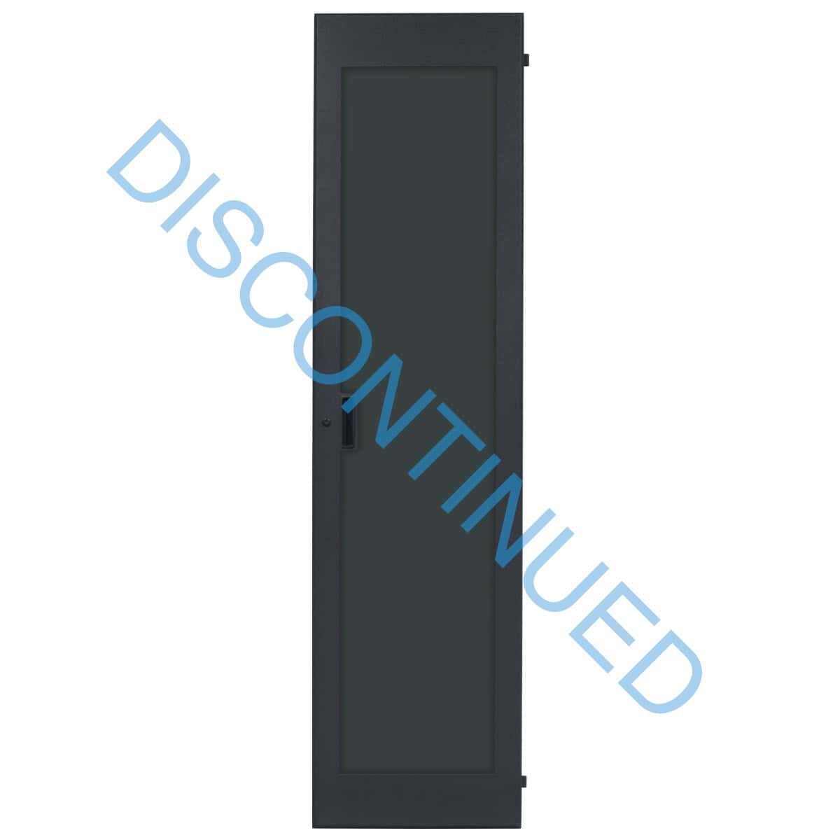 Reversible surface-mount front door for Lowell host racks (LHR Series) can be mounted with left- or right-hand swing orientation. The smoked plexiglass steel door features an integral recessed handle and a lock with a key that differs from the lock on the optional rear access cover. The front door swings open 180 degrees. Black wrinkle powder epoxy finish.