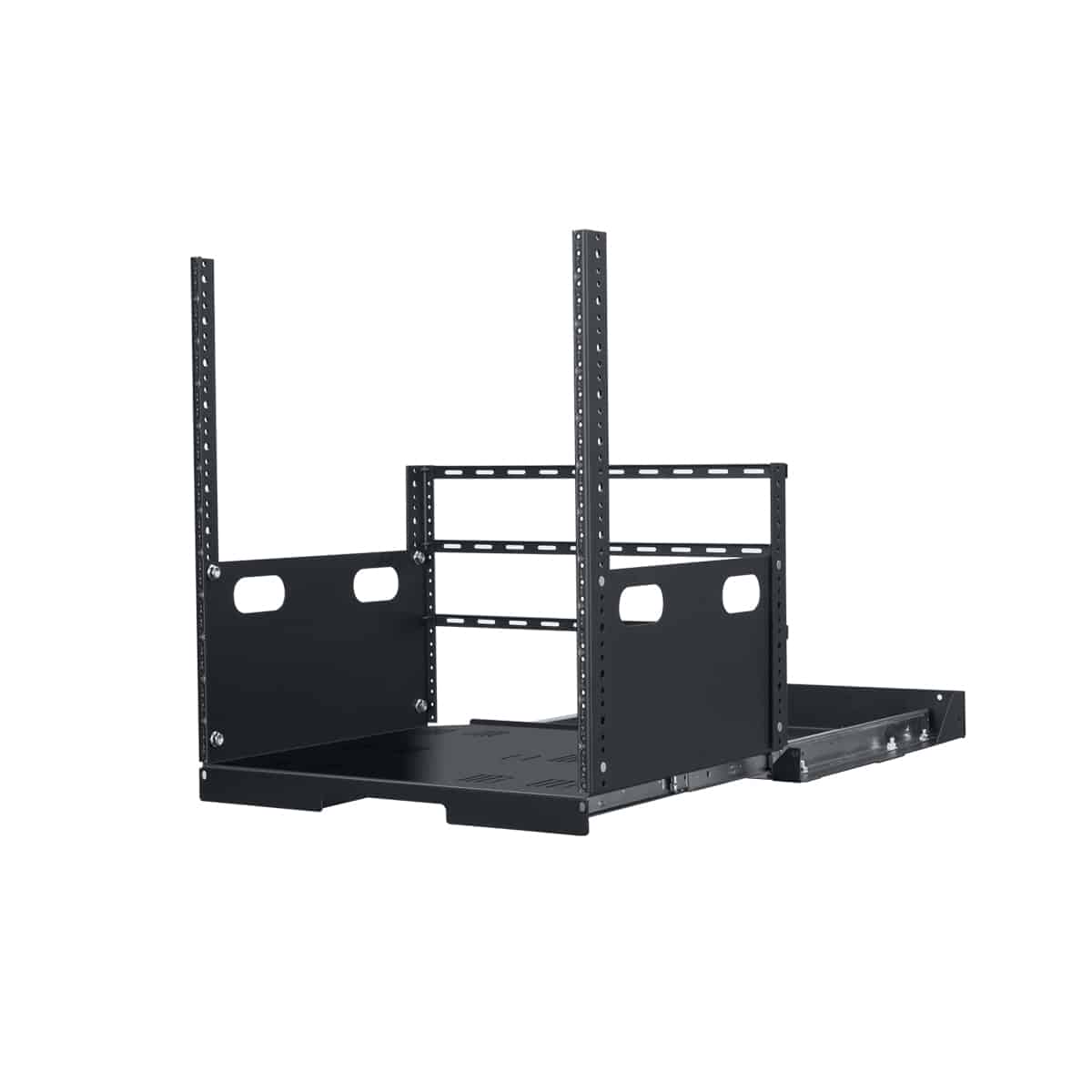 - 11-gauge steel corner post mounting rails tapped 10-32 (12U front, 7U rear)
