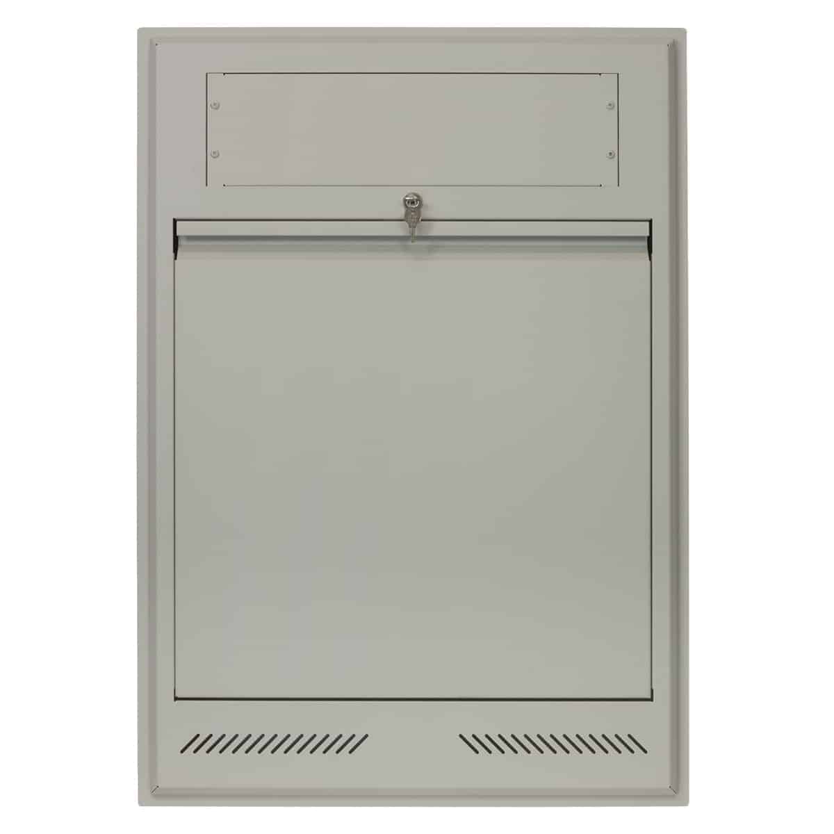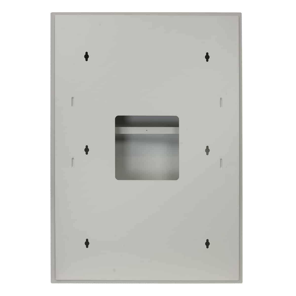 - For recessed installation, this wall-mount rack features steel construction with beveled edges and Network Grey finish, vents in front and base, and compound knockouts for cables (top and base).
