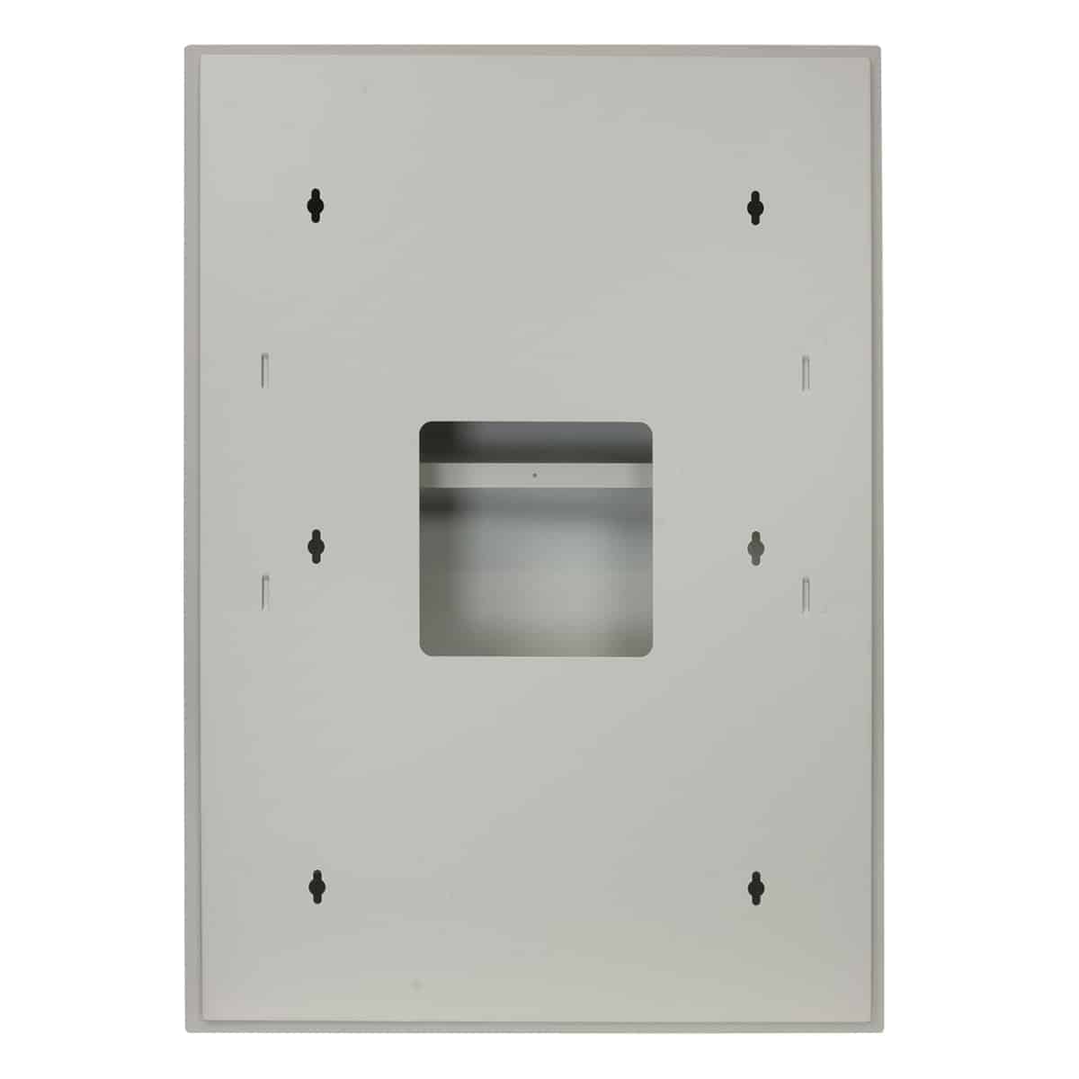 This model is a recessed wall-mount rack with tilt-open front. It's ideal for amplifiers, small mixers, PA systems or consumer electronics.  The 3U x 20-inch main compartment stores equipment vertically. Lift the integral handle to manually lower the bay to a positive stop for equipment servicing or operation. Remove the blank top panel to utilize the 3U pocket and add a control panel. Includes electrical box and DIN rail in base and trim plate.