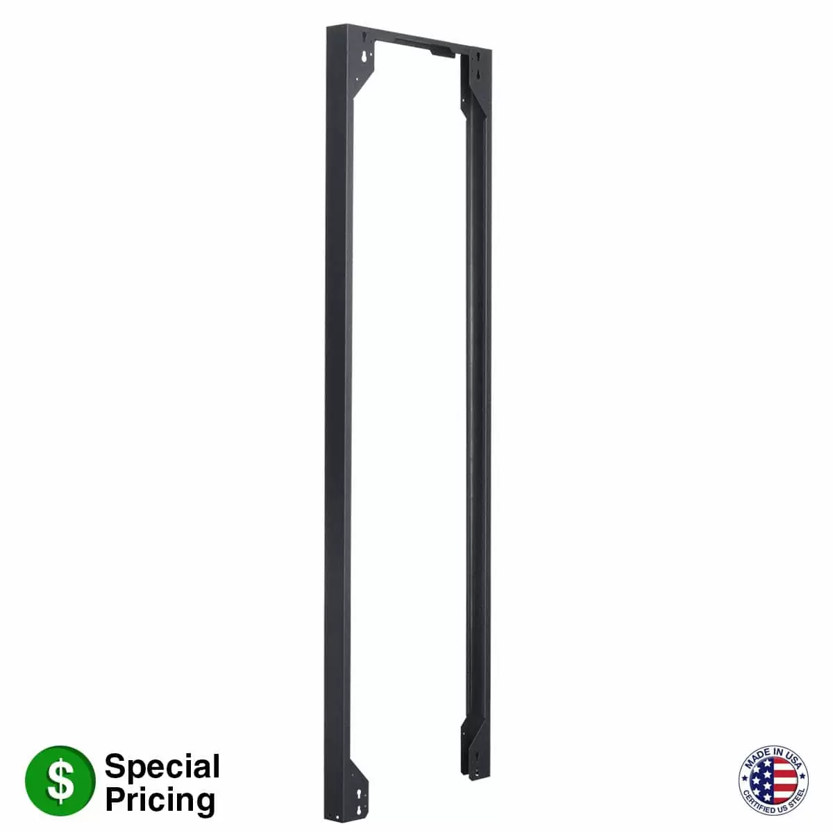 The 3-inch wide cable chase (raceway) provides extra wiring space for a 44U x 26"D rack (LXR Series). Steel with smooth black powder epoxy finish. The cable chase assembles with included nuts/bolts (no drilling needed).
