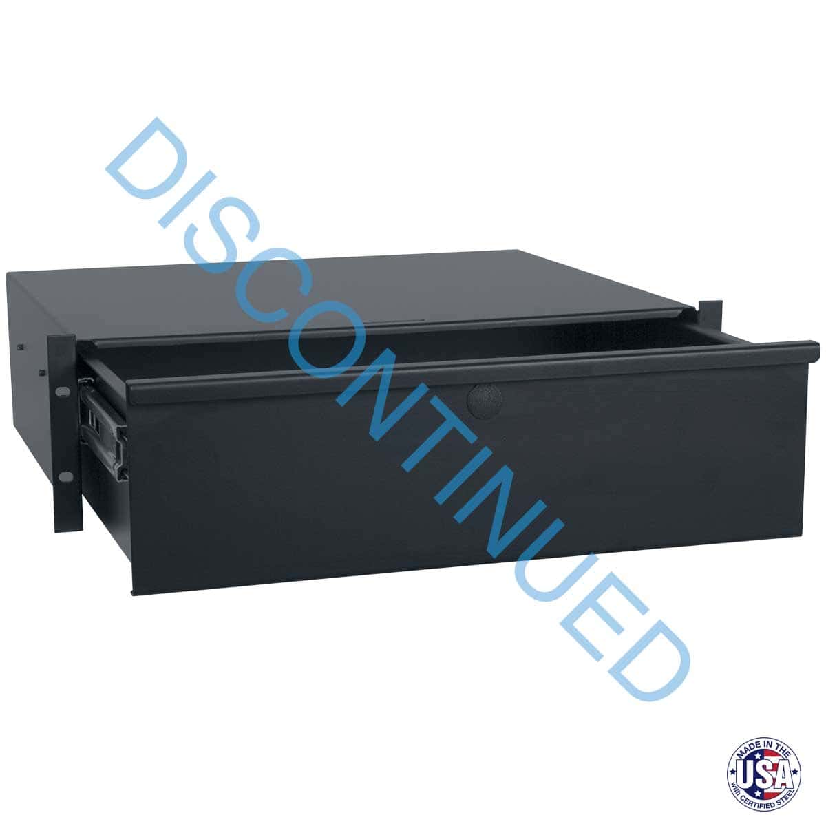 Non-locking utility drawers for use in 19-inch equipment racks are fully-welded 16-gauge steel with smooth black powder epoxy finish. Load capacity 50 lbs. Ball bearings provide smooth operation, while a rear bushing provides convenient wire access. Made in the U.S.A. The 14.5 inch deep drawer.