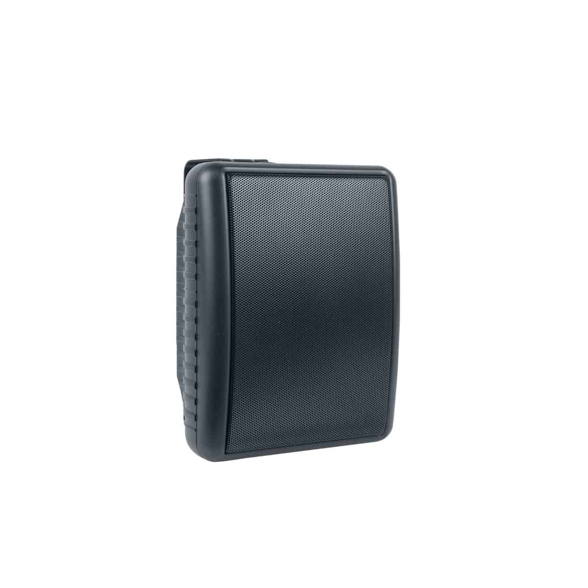 The speaker for indoor/outdoor foreground music application shall be Lowell Model OS-50TB. The speaker shall have a 5.25 in. polypropylene coated woofer and 1/2 in. PEI tweeter. It shall have a 50W power rating with a screwdriver-adjustable switch for direct 8ohm or distributed 25V, 70V or 100V application. It shall have a frequency response of 102Hz-16.5kHz (±6dB) and sensitivity of 85.4dB measured 1W1M. Housing shall be molded plastic with a fine mesh aluminum grille with black finish. The assembly shall include an adjustable U-bracket for vertical or horizontal installation with slots for mounting to a single gang E.O. box. Each speaker shall measure 8.74 in. x 7.01 in. x 5.49 in. (without bracket), 9.10 in. x 7.01 in. x 6.01 in. (with included bracket) and weigh 4.9 lbs. Housing shall be equipped with 1/4 in.–20 threaded inserts.