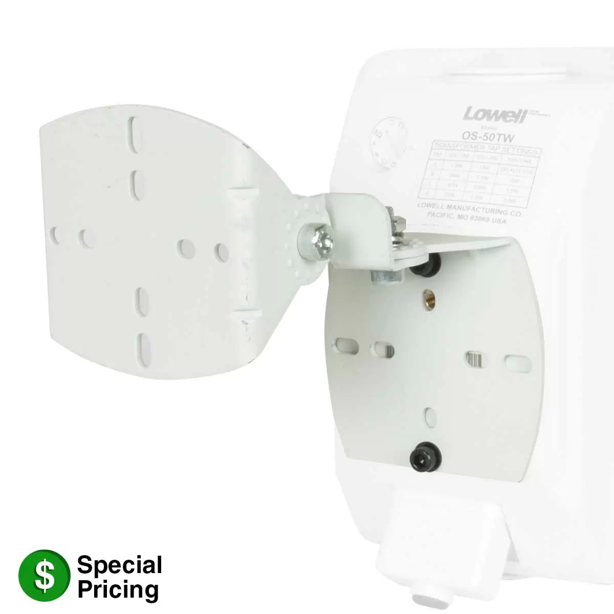 Mounting bracket for use with OS-100 or OS-50 Series speakers is omni-directional and allows greater versatility than the U-bracket that ships with the speakers. White.