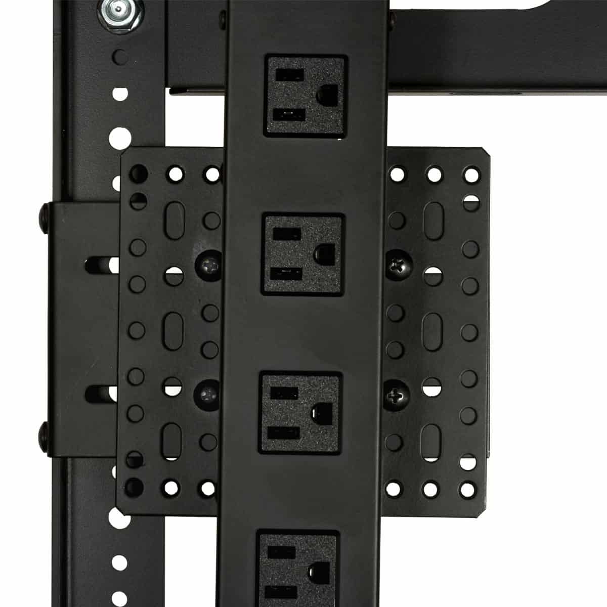 The mounting brackets are made to hold a power strip or cable manager vertically in a standard E.I.A. rack. The brackets are primarily for use with an open frame rack, such as one from Lowell's LXR or LVR Series.