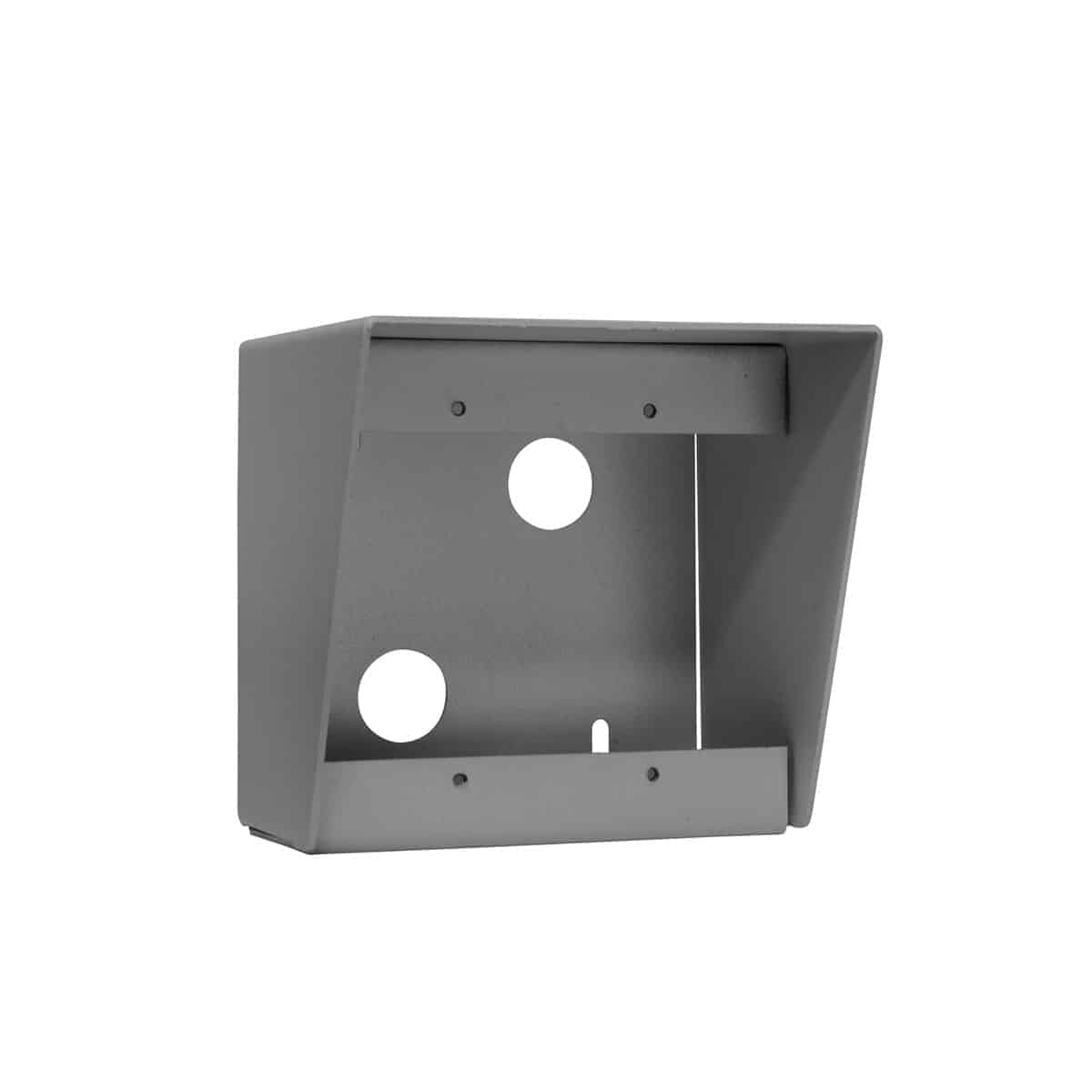 The intercom shall include a surface-mount wall box, Lowell model PHB-2. The box shall be 11-gauge steel with gray finish and feature an overhanging top to help protect mounted devices. Overall dimensions shall be 4.56″H x 4.625″W x 4.00″D. The box shall feature rear mounting holes, plus holes for wire management.