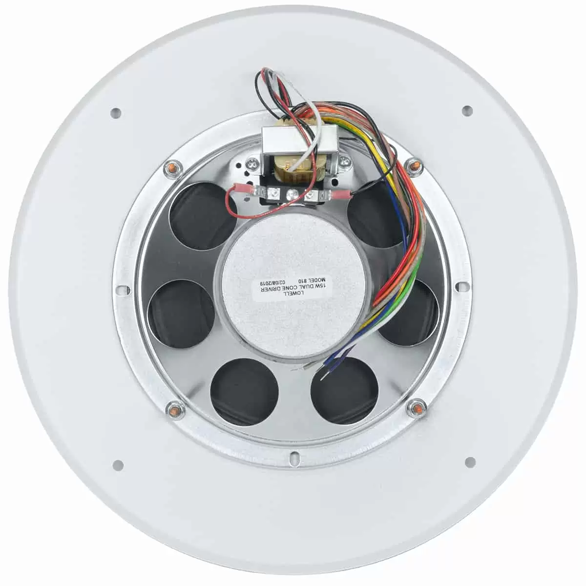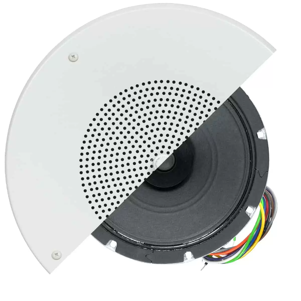 For background music and paging, model R1810-72K is an excellent choice where installed cost is a prime consideration. This assembly is designed to provide consistent performance, clear intelligibility and wide dispersion. It includes an 8-inch driver, dual voltage (25V/70V) transformer and grille with a volume control knob.