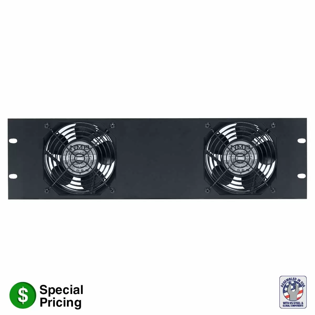 Standard 19-inch rack panels feature whisper quiet fans and ship ready to install. The 4.7-inch fan diameter features 50 cfm airflow rating and 28 dBA noise rating per each fan. Includes standard 6-ft. power cord.