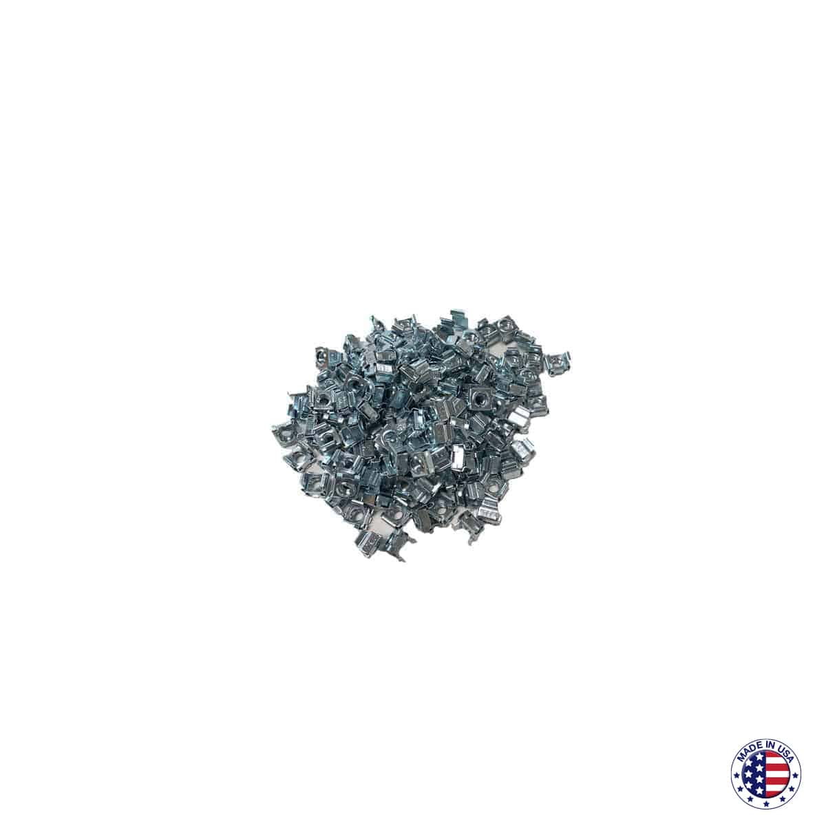 Cage nuts for use with standard screws and square-punched rails are available as 10-32, or 12-24. 100 pieces per bag.