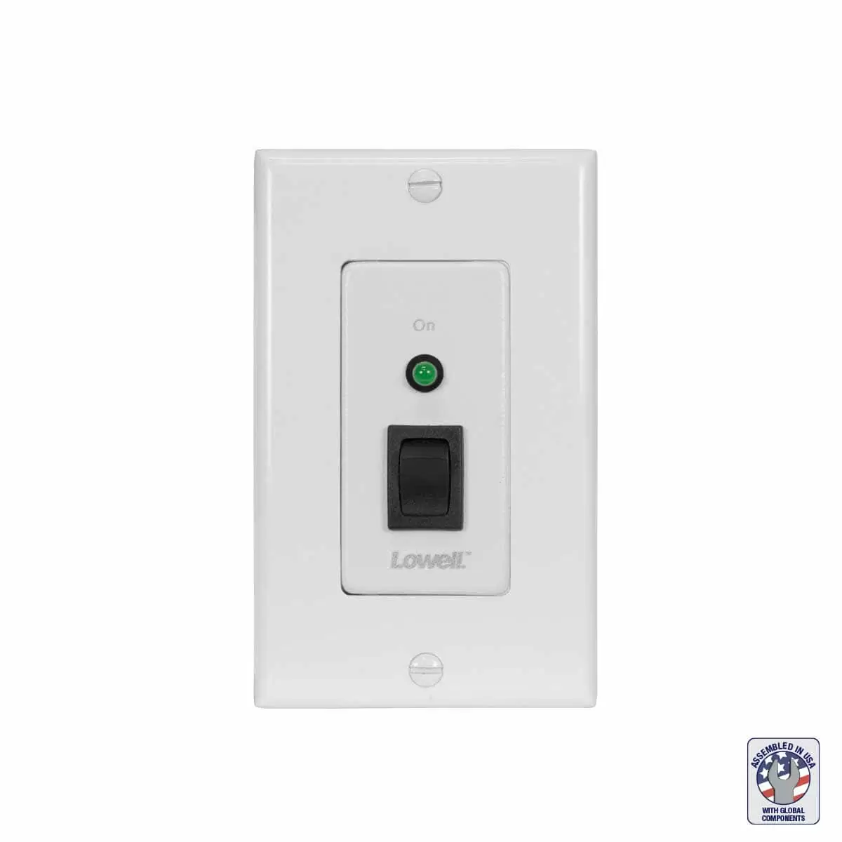 Rocker-style, low-voltage, SPST switch with momentary closure for multi-switch applications — includes rear termination strips to connect a compatible Lowell sequencer (SEQ) for equipment activation. IMPORTANT:  Check spec sheet for other products to ensure switch compatibility.