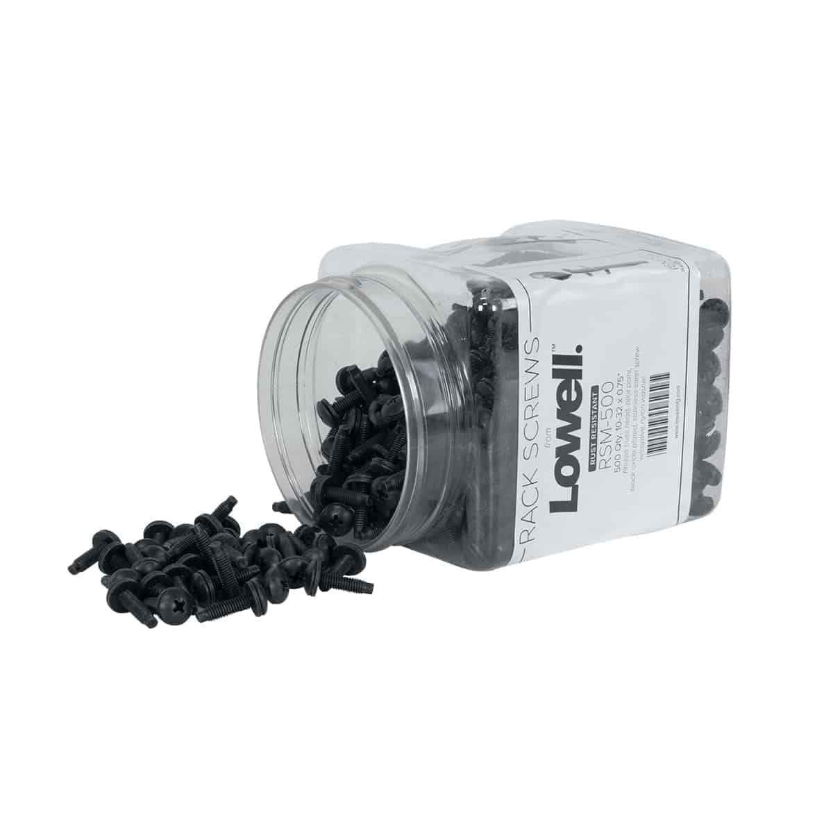 Philips Truss-head rack screws with pilot point tip and captive (pre-installed) washer for time-saving installation. Screws are 302 stainless steel construction with black oxide finish.