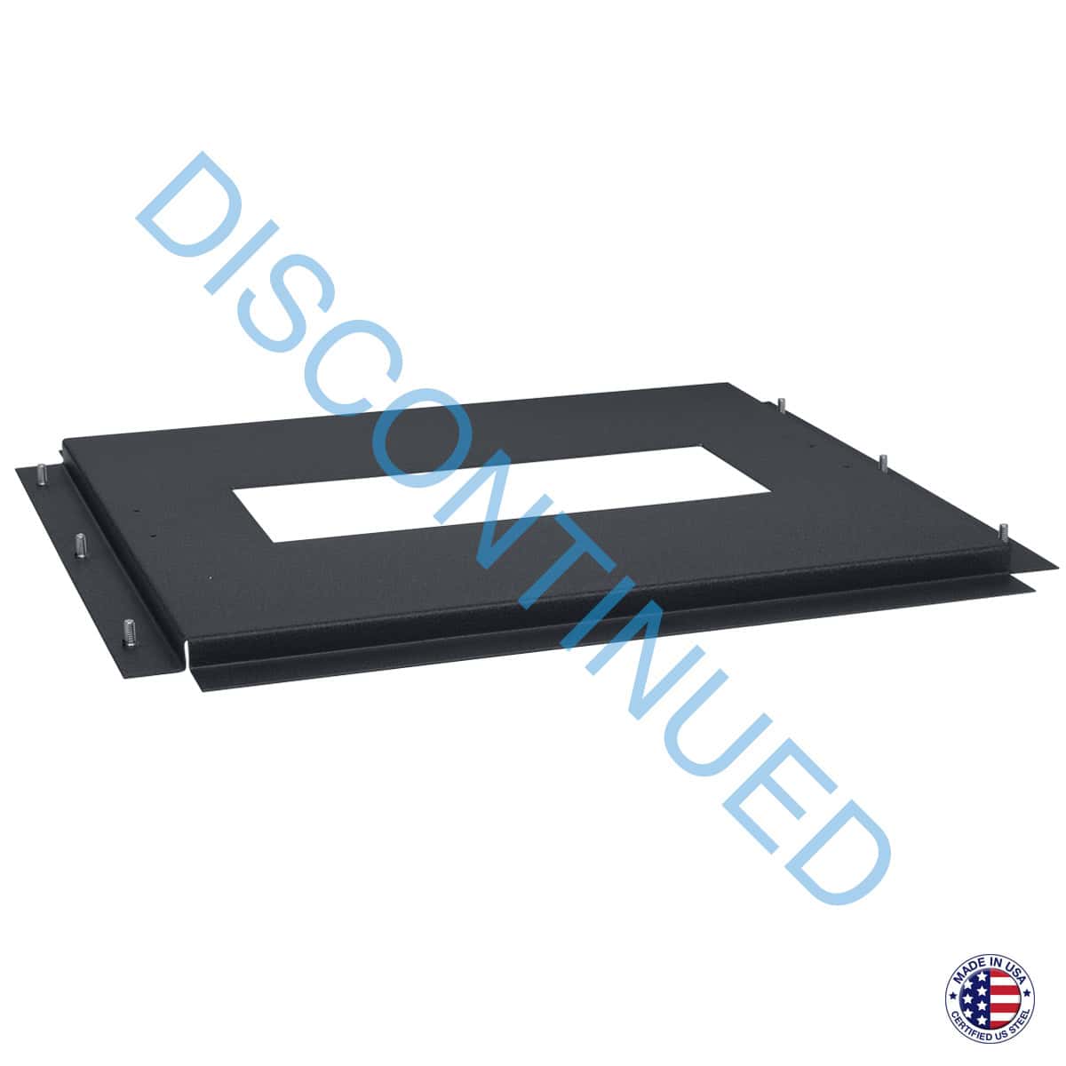 Shallow stationary base provides a sub-floor 2.25-inches below bottom rack space, creating a convenient area to mount accessory devices on the floor of the installation. Does not increase rack space. Steel with smooth black powder epoxy finish.