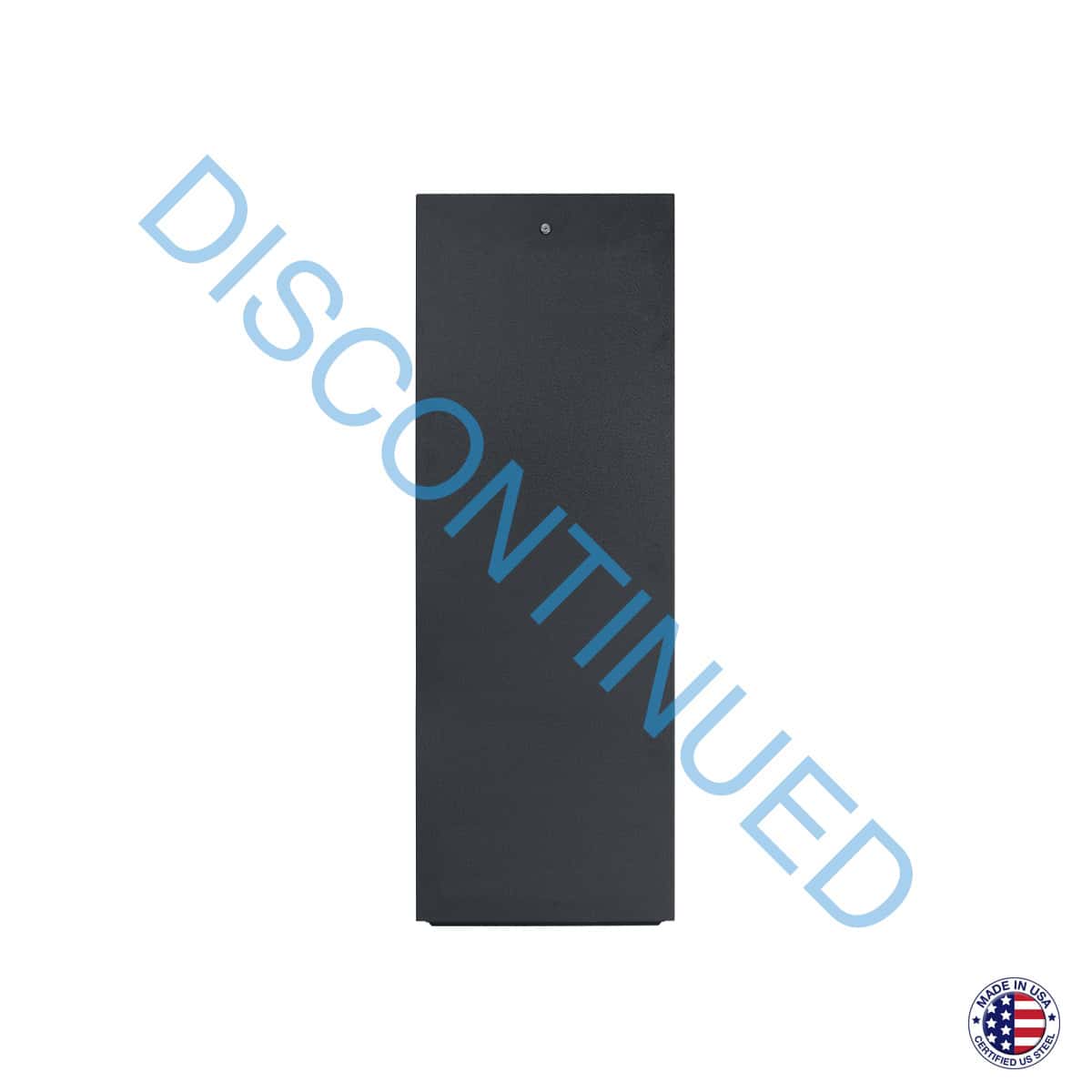 The rear access cover for slim 19-inch wide  racks (LXR, LVR Series) is made to open from the top and secure with a key lock. Solid steel with black wrinkle powder epoxy finish.