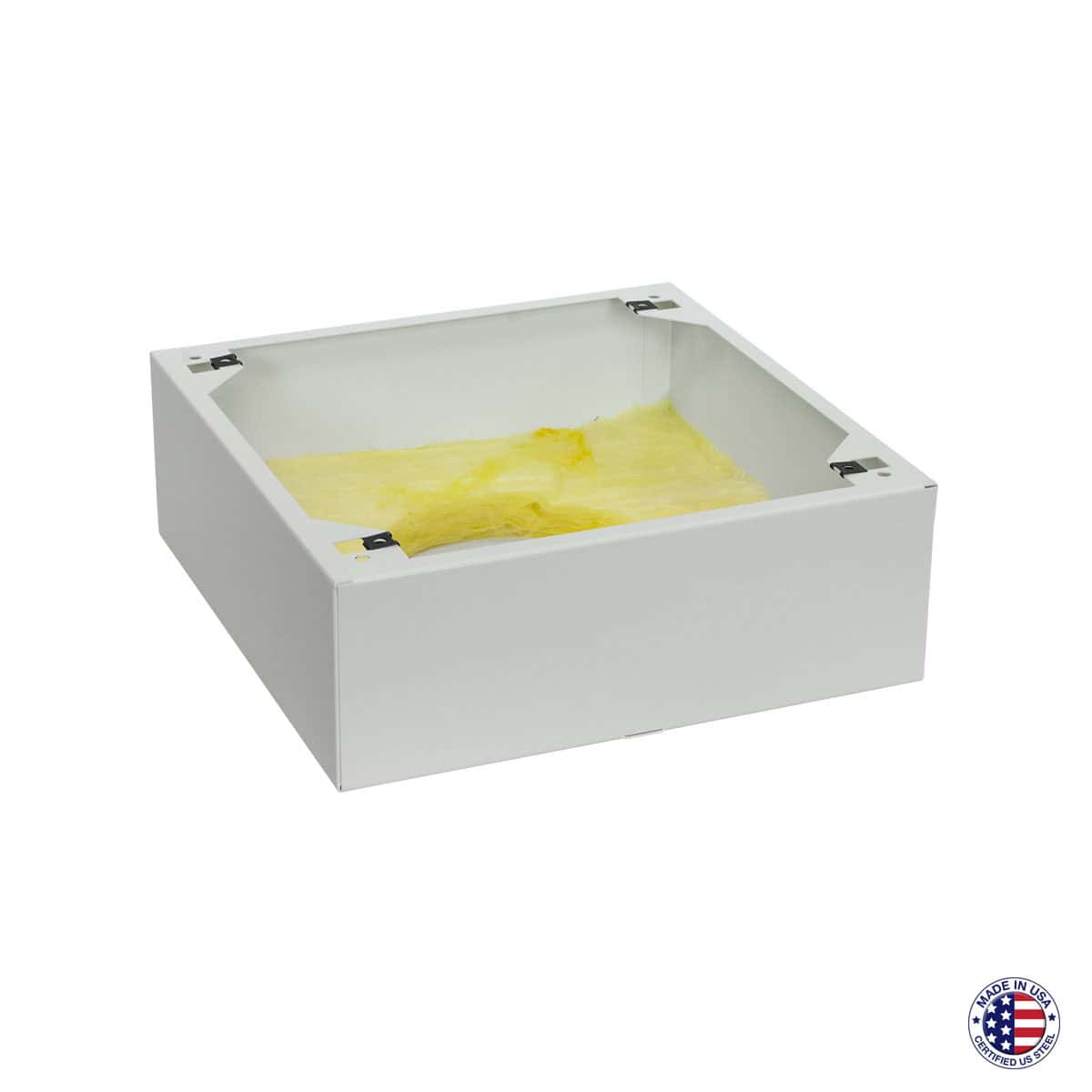 Surface-mount steel enclosure model CB84-SGA is designed for use with an 8-inch speaker and screw-mount grille. The clean square format with white powder coat finish is ideal for schools, offices, retail spaces, hotels and similar venues. Includes one-inch thick batting. Measures 11.5 in. square x 4 in. deep.