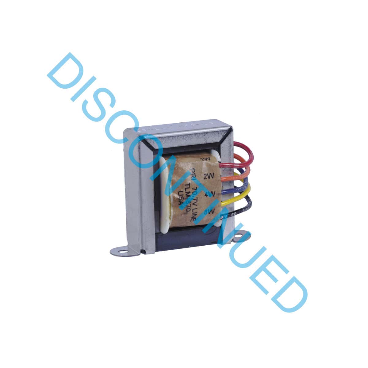 Line-matching 8W transformer for high quality audio systems and general purpose paging applications where wide frequency response, low insertion loss, and high power handling are critical considerations. The TLM series features the industry standard open-housing design and color-coded leads for fast installation.