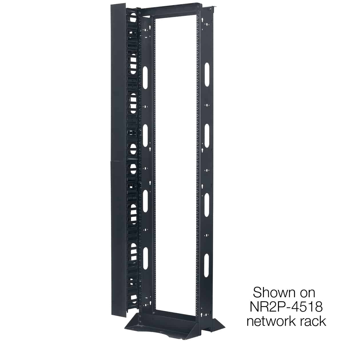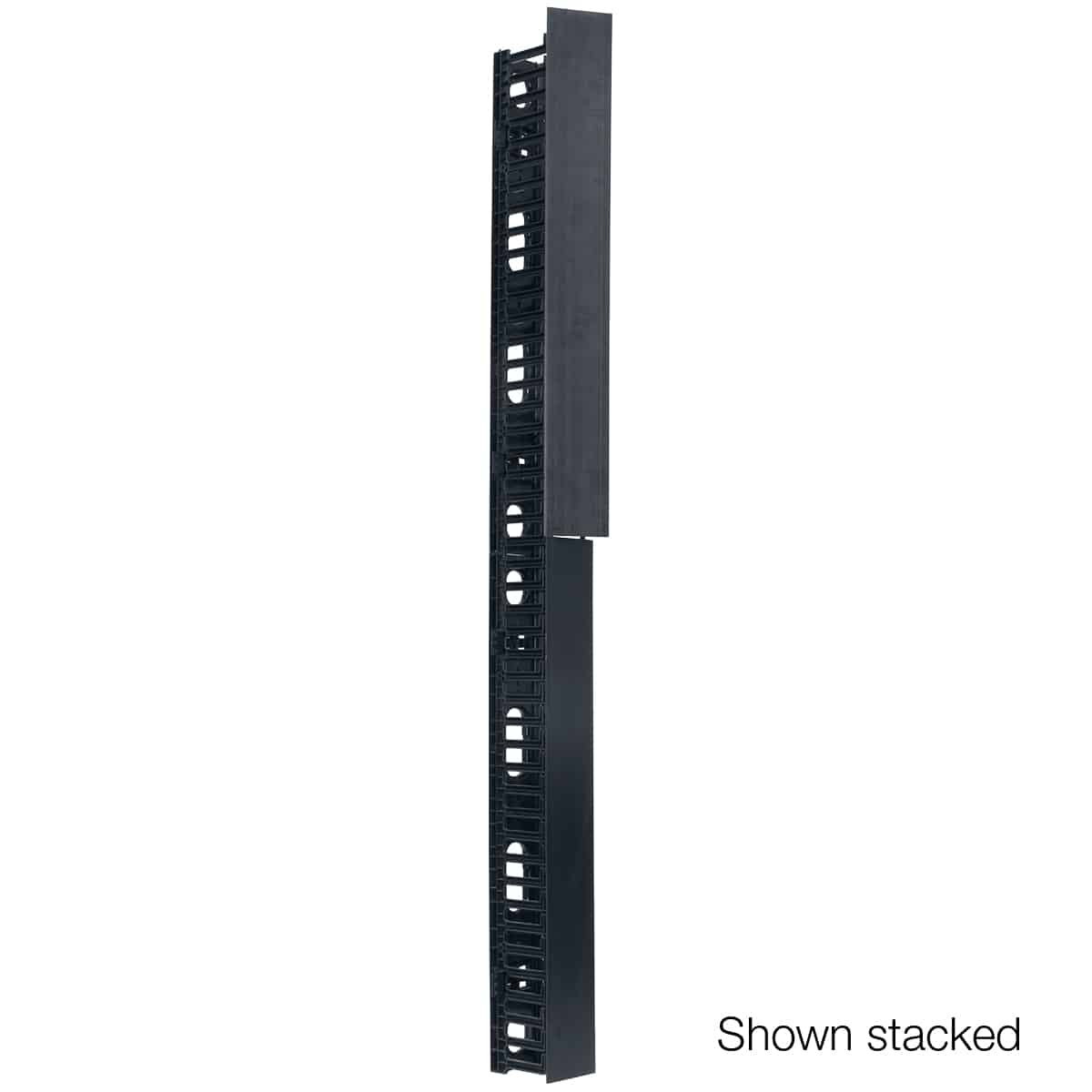 The rack shall include a single-sided, vertical-mount plastic cable duct with protective cover, Lowell model VCD-45. The plastic cable duct shall consist of two 22.5U pieces that assemble to 45U overall. The unit shall include mounting brackets and hardware.