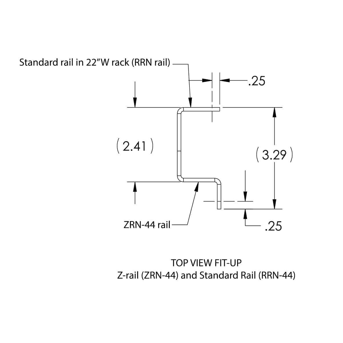 The rack shall include Lowell Model ZRN-44 rail kit, which shall feature two 11-gauge certified US steel “Z” offset rails. Featuring threaded 10-32 holes on E.I.A. spacing with printed RU increments, and a vertical array of 1.50 in. x 0.75 in. obrounds for cabling. Each rail shall measure 1.00 in. x 1.413 in. x 1.00 in. x 77.00 in. and shall weigh 7.1 lbs.